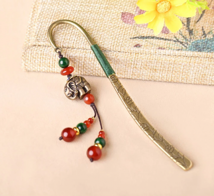 復(fù)古雕花小象與水潤的瑪瑙,造型唯美,古色古香,當你低頭淺閱時,不就陶冶情操,還能帶動你對文字的向往。下面清晨六點古玩小編為你推薦清晨六點古玩復(fù)古小象古風(fēng)文藝流蘇書簽?!?/p>