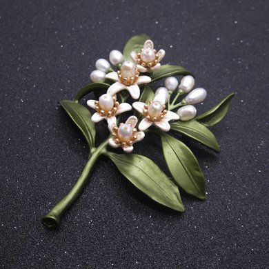橙花樹(shù)葉,綠色烤漆,質(zhì)感上佳,請(qǐng)欣賞清晨六點(diǎn)古玩小編為你帶來(lái)的精致珍珠復(fù)古胸針。……