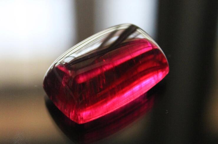 碧璽的鑒別法之二用折射率。碧璽折射率和雙折射率都很大,從上往下看,可以看到底棱呈明顯的雙影現(xiàn)象(背刻面棱重影現(xiàn)象),玻璃等仿品無論在任何角度都不能觀察到后刻面棱重影……