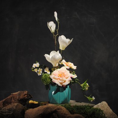 純手工編織而成,型體之美,將人心脾。看守去自然古韻,簡約而不簡單。花器纏繞雅遠,粗陶之魅力千變?nèi)f化的精彩下面清晨六點古玩小編為你帶來新中式插花藝術(shù):竹屏月影禪意中式插花……