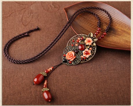 風吹起如花般的流年,而你的笑容搖晃搖晃,成為途中最美的點綴,猶如拂過一陣微風,暖融融的。下面清晨六點古玩小編為你帶來復古紅色花朵吊墜毛衣鏈項鏈。……