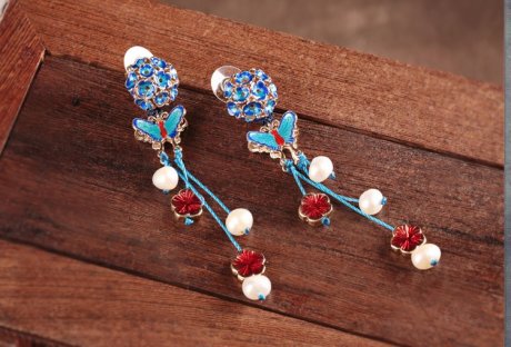 藍蝶翩翩動舞,花珠靈動芳躍,華麗搭配耳畔,夢歡逸逸悠悠。美麗的藍蝴蝶是自由和希望的化身,搖曳于耳畔,滿溢這浪漫典雅的風情。下面清晨六點古玩小編為你帶來清晨六點古玩景泰藍蝴蝶耳……