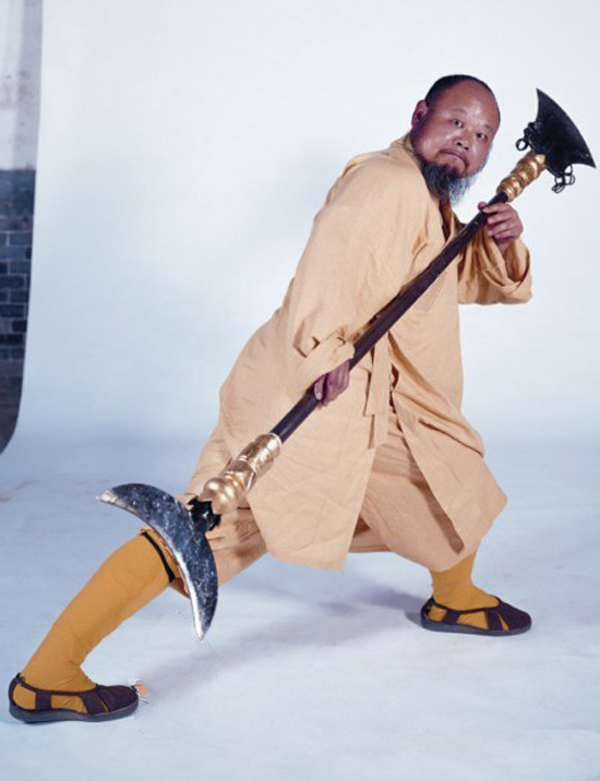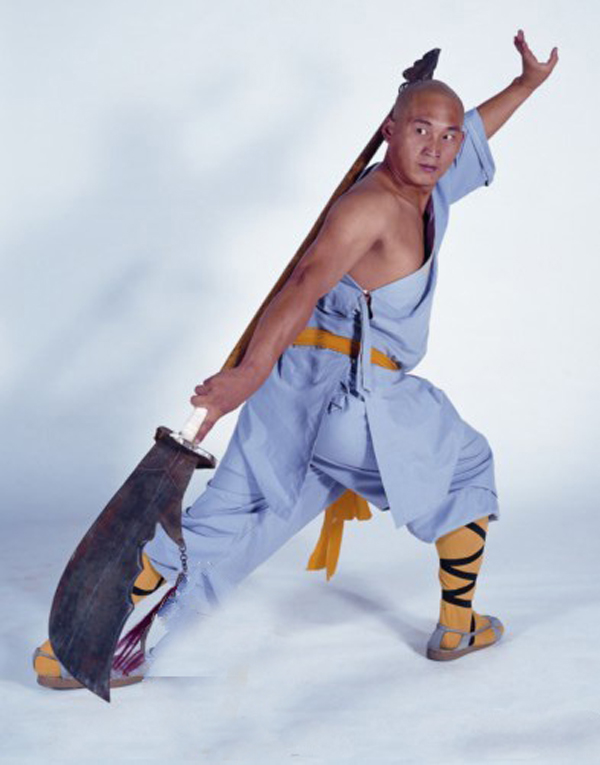 少林老刀:?jiǎn)蔚稙槭税惚髦凶钇胀ā⒆钣旅汀⒆顓柡Φ谋髦唬赜袆诺栋l(fā)猛虎之稱。其動(dòng)作包含砍、劈、崩、扎、捺、展、抹、剁、云(纏頭、裹腦)、掃等。演練中要求雙手配……