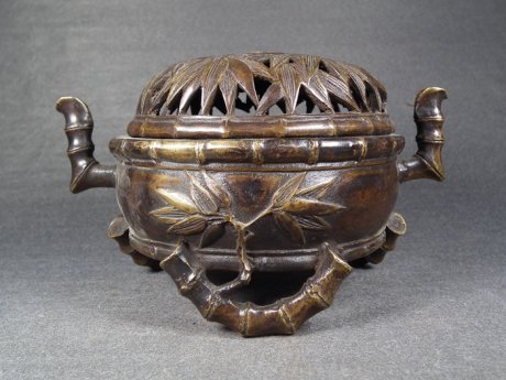 日本高岡銅器,福獅子香爐。平滑細(xì)致的鑄體,耐人尋味的色澤,精致的紋理和造型以及充滿動(dòng)感的曲線,令人一見鐘情,愛不釋手。從小到可以納入掌中的文具,到香爐、花瓶、茶器、……