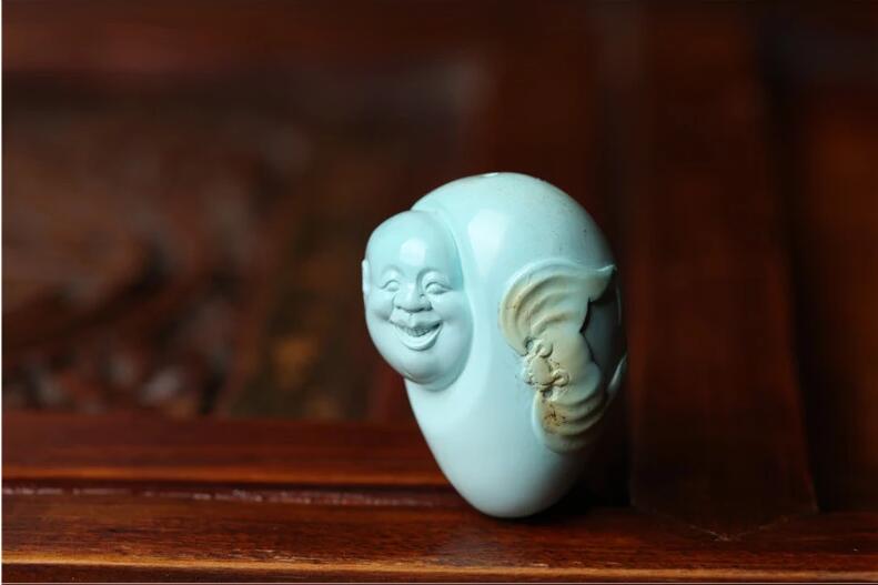 稀有老礦料冰透小舒掛墜,重24.05克,雕刻的是蓮花佛手。尺寸:40*32*12毫米。搭配原礦綠松6毫米圓珠,27.06克,高瓷綠松佛頭3.41克。舒俱萊隔片4.3克。項(xiàng)鏈長56厘米還可以調(diào)節(jié)。清晨六點(diǎn)古玩……