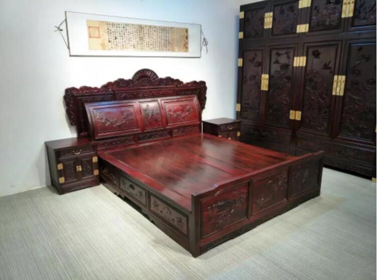 老撾紅酸枝學(xué)名紫榆藤,《紅木國標》定為紅酸枝,是屬黃檀屬紅酸枝木類,主要產(chǎn)于老撾,數(shù)百年方可成才使用。清晨六點古玩小編為您推薦交趾黃檀中式實木圓床。……