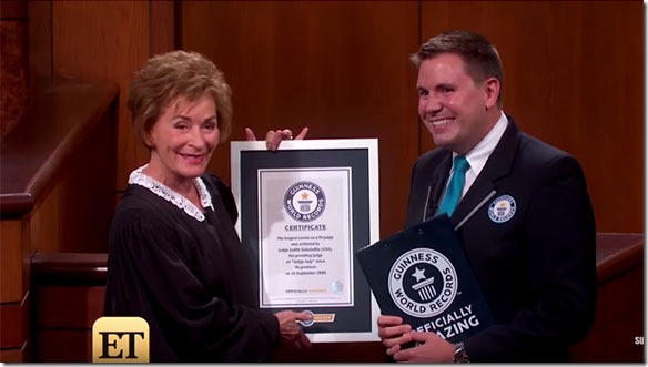 據(jù)吉尼斯世界紀(jì)錄的最新報道:法官朱蒂從事電視仲裁長達(dá)18年 刷新世界紀(jì)錄 法官朱蒂(Judy)自1996年9月16日加入了美國備受歡迎的日間仲裁節(jié)目,至今已經(jīng)播出20季,長達(dá)18年11個月零2天。節(jié)目不僅使其成為一名主持明星,也讓她因此榮獲了一項(xiàng)令人激動的吉尼斯世界紀(jì)錄稱號【作為一名電視法官的職業(yè)生涯最長】。 朱蒂在1996年從曼哈頓家庭法院退休后就加入了這檔仲裁節(jié)目,并在節(jié)目中裁定了許多現(xiàn)實(shí)生活中的小額糾紛。朱蒂在20季的節(jié)目中處理...